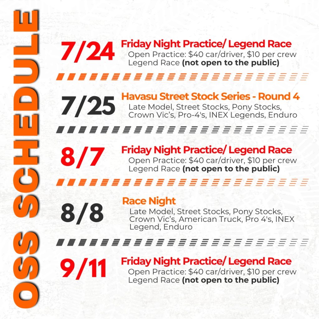 The track hosts various stock car divisions including Pro Late Models, Bandos, Legends, Street Stocks, Pro 4’s, Stock Pony, Sport Compact, American Race Trucks, Hotpit Autofest Drift Competitions, Demo Derby’s, Car Shows, Jr. Fan Club bike races & more!