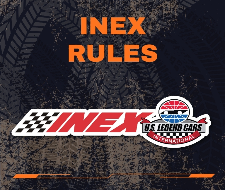 2026 General Rules & Procedures Updated 12-30-25 INEX Legends Rules See INEX Website for updated rules. Click the image to be redirected. Enduro Rules Updated 1-10-26 Crown Vic Rules Updated 12-30-25 American Truck Rules Updated 12-30-25 Pony Stocks Rules Updated 12-30-25 Pro-4 Rules Updated 12-30-25 Street Stock Rules Updated 2-3-26 Limited Late Model Rules Updated 12-30-25